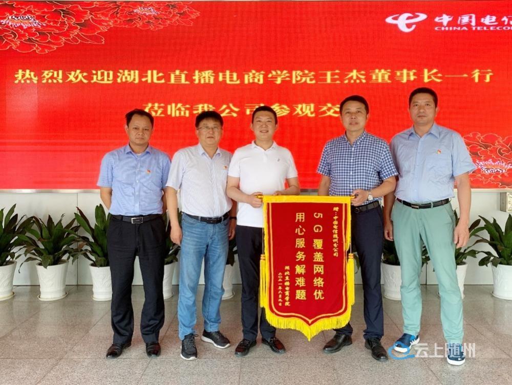直播电商学院王杰董事长对随州电信的服务非常满意,送来了锦旗,并主动来随州电信进行现场参观交流,并表示后续将考虑在云业务等方面与电信进行深度合作。