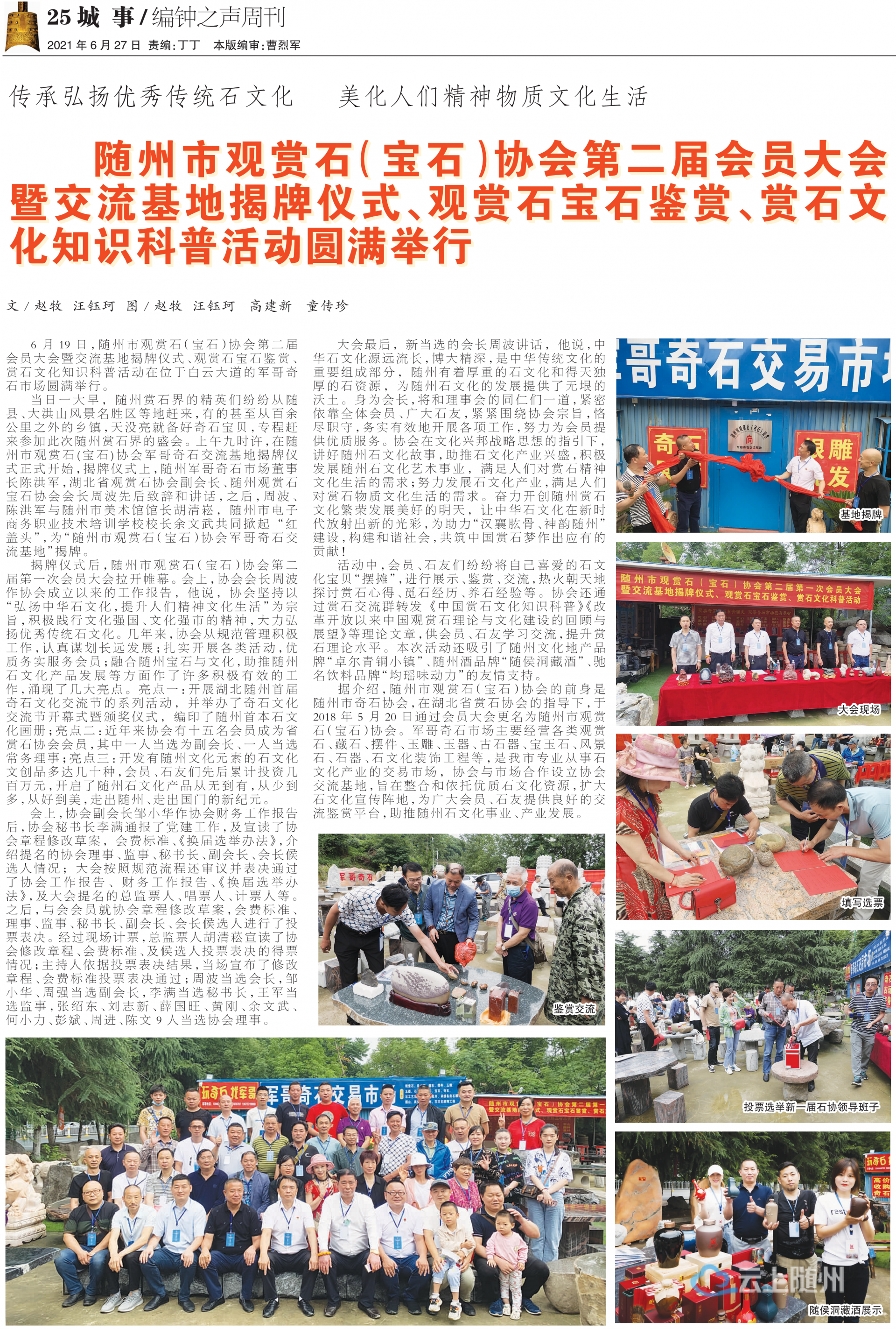 随州市观赏石(宝石)协会第二届会员大会暨交流基地揭牌仪式、观赏石宝石鉴赏、赏石文化知识科普活动圆满举行