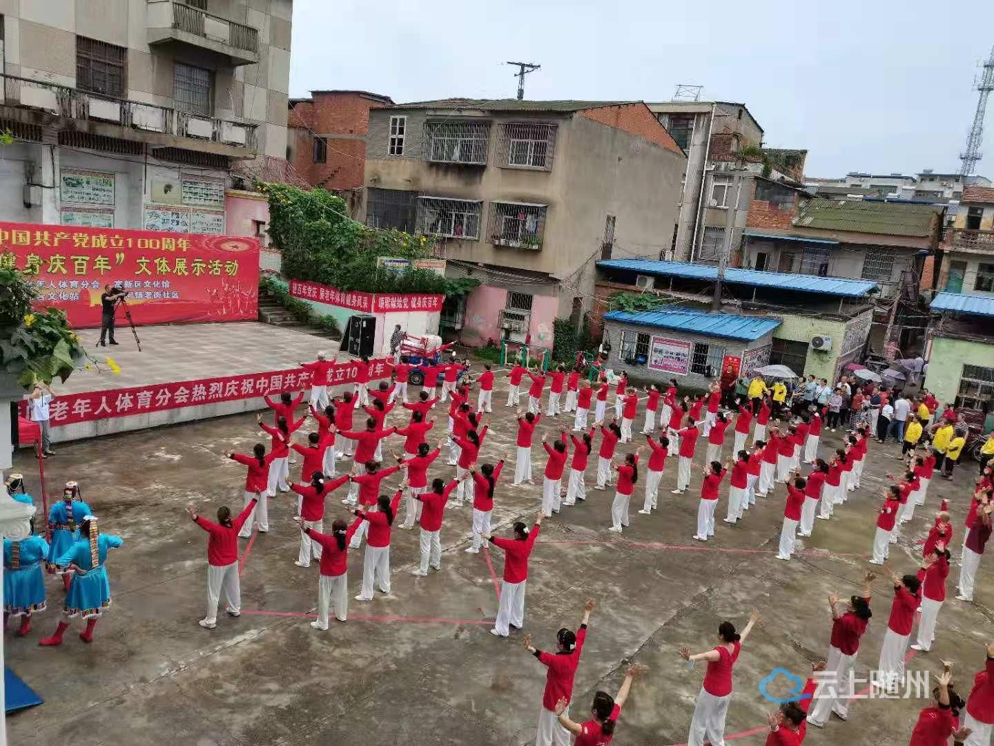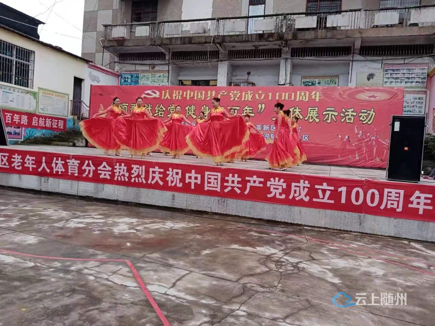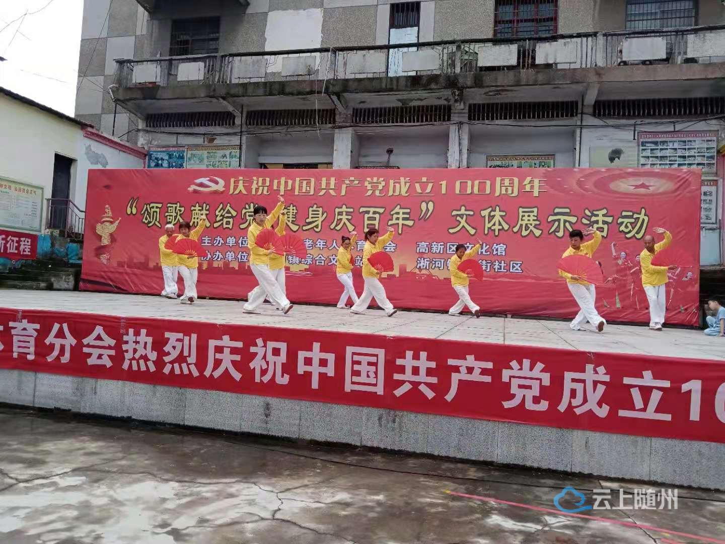 为了庆祝中国共产党成立100周年 ,6月27日上午随州高新区老年人体育分会,高新区文化馆,淅河镇综合文化站联合举办了“颂歌献给党 健身庆百年”文体展示活动。