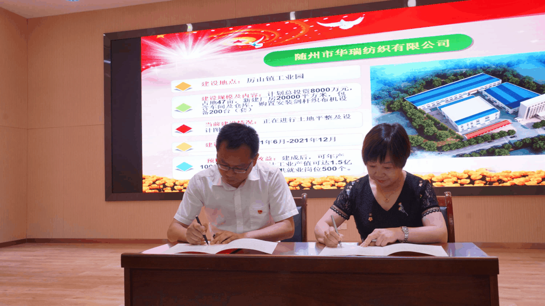 文艺表演结束后,厉山镇相关负责同志与随州腾达环保科技有限公司、随州市华瑞纺织有限公司、湖北神农菌紫食品有限公司等公司签订投资协议,提前实现该镇工业园区首期170亩的“满园计划”,多个工业项目的相继落地为该镇经济社会发展注入了新血液,提供了强劲动力。