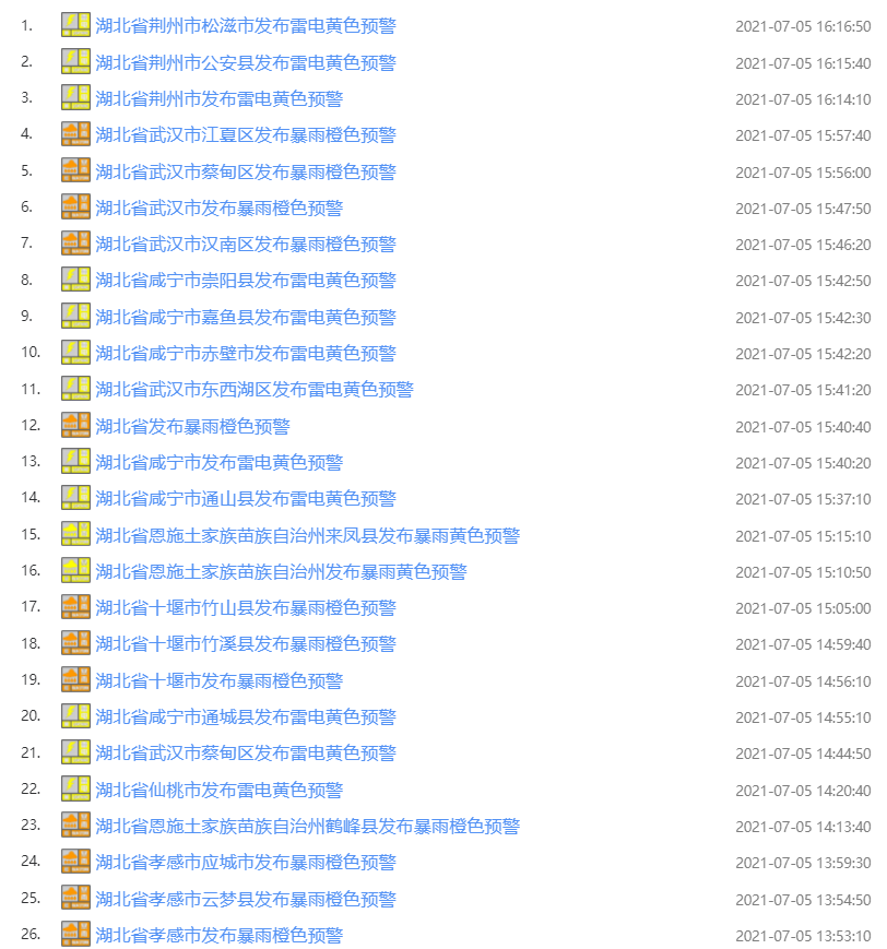 部分气象预警截图