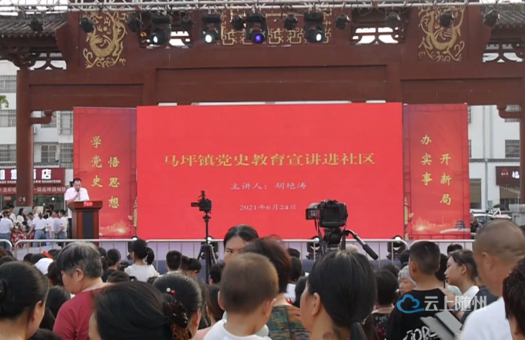 以点带面,先进典型现身讲。6月24日在该镇在詹王广场隆重举办庆祝建党100周年文艺晚会暨党史教育宣讲进社区活动,广水市作协理事、随州市优秀青年代表胡艳涛通过挖掘马坪镇自1927年第一个党支部成立至今的史料文献,以鲜活的人物的和身边的故事,为现场1000余名党员群众讲述了百年马坪走过的艰难历程和取得的辉煌成就,引起强烈反响。