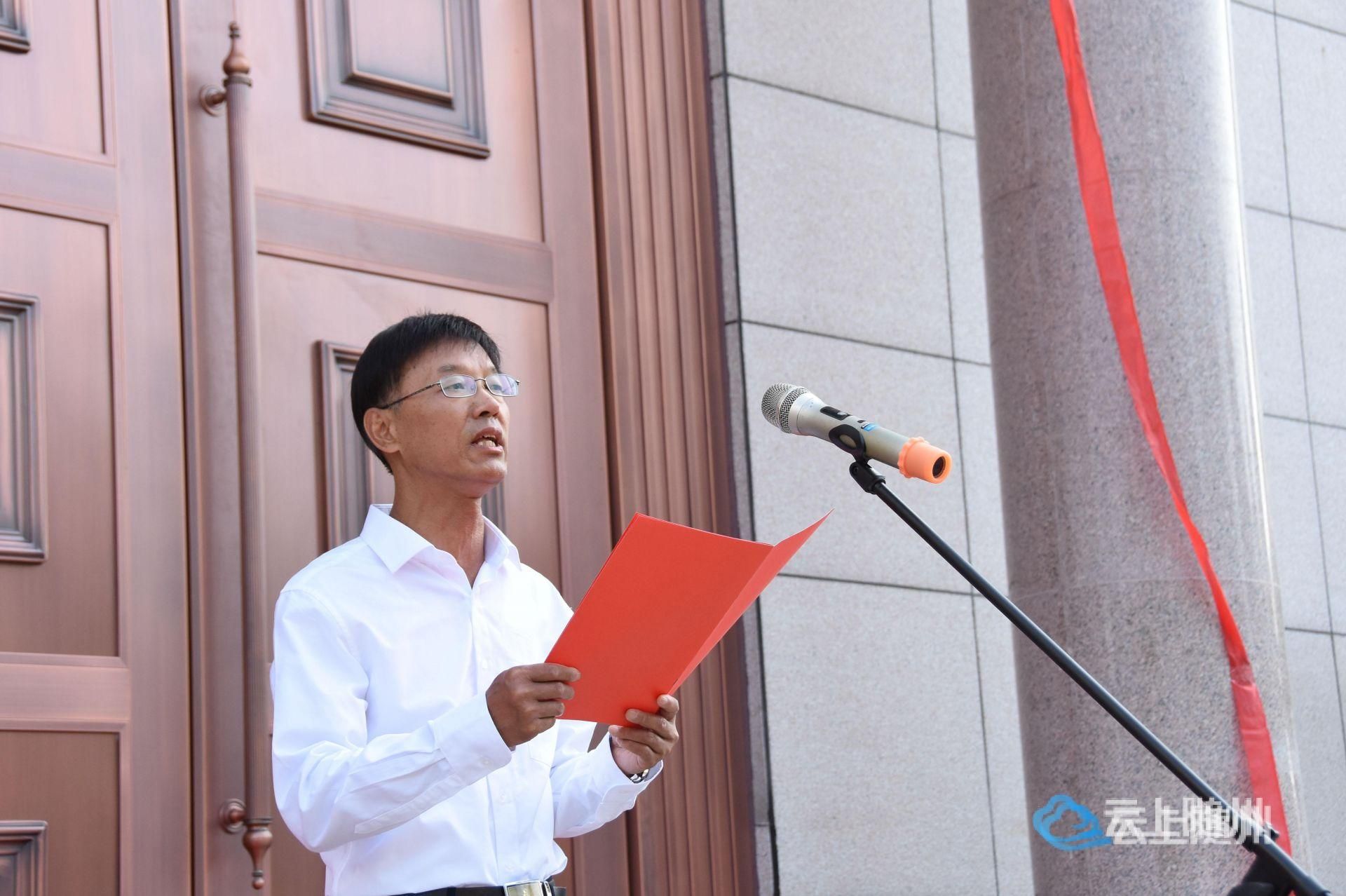市政协副主席程敦怀首先介绍了政协文史馆筹备建设有关情况;之后,市政协主席冯茂东、副市长郑晓峰在一阵热烈的掌声中共同掀起“红盖头”,为随州政协文史馆揭牌;在冯茂东庄重宣布“随州政协文史馆正式开馆!”之后,冯茂东、郑晓峰,市政协副主席张书文、黄秋菊、周峰、万正强、程敦怀、刘玲、陈德贵,秘书长田涛及市政协全体机关工作人员等步入馆内,共同参观学习。