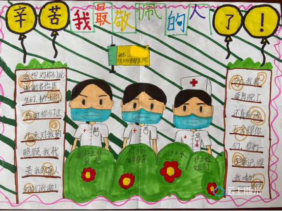 “辛苦了我最敬佩的人”,一位来自10岁小朋友患者,在她的手绘画上写着这样的感谢语。7月10日上午,曾都医院妇产科医护人员收到一份来自10岁小朋友送上的特别礼物一幅手绘画,带来了特别温馨的幸福感。