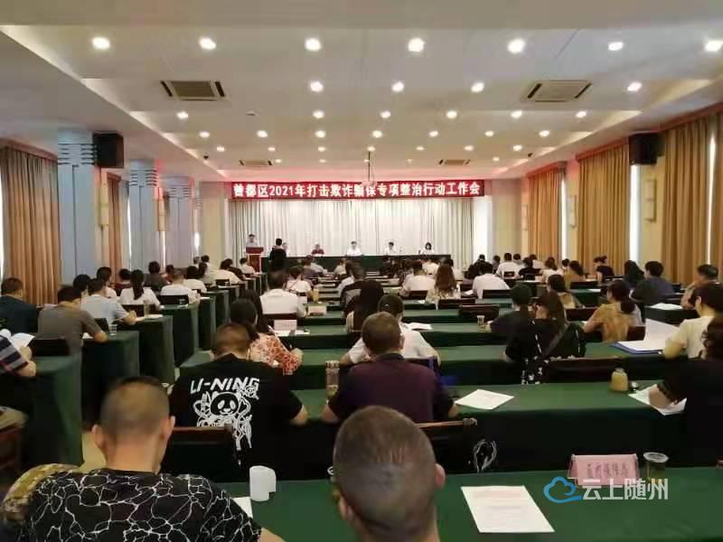 2021年7月15日,曾都区医疗保障局组织召开曾都区2021年打击欺诈骗保专项整治行动工作会议。会议宣读了《2021年打击欺诈骗保专项整治行动方案》;曾都医院、南郊社区卫生服务中心、随州爱尔眼科医院、天济大药房分别作表态发言;曾都区医疗保障局、曾都区公安分局、曾都区卫生健康局分别作工作安排。