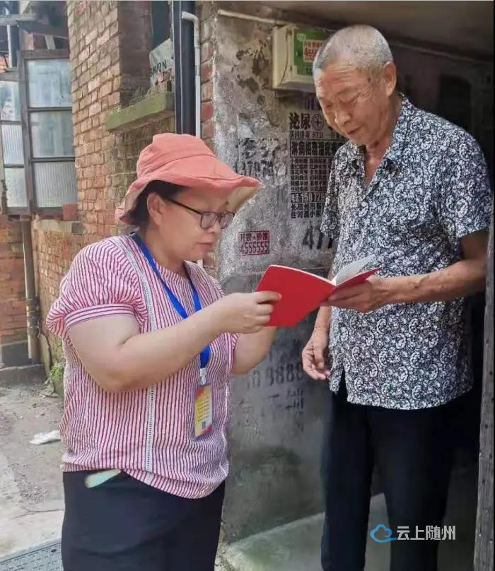 7月13日,东城街道八角楼社区工作人员入户看望老党员,并为老党员发放党员手册。(谌巧 罗辉)