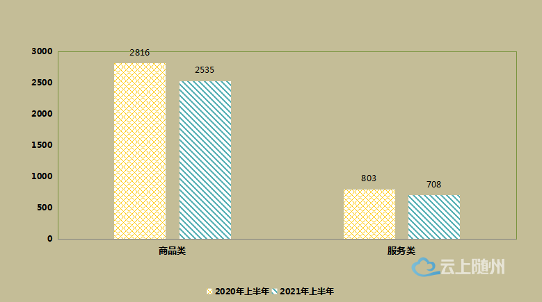 图二:2021年上半年全市12315系统受理消费者商品类和服务类投诉量图