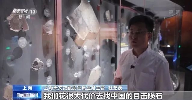 上海天文馆藏品征集业务主管杜芝茂:“我们有自己的征集原则,一定要展出中国自己的陨石。我们花很大代价去找中国的目击陨石。这两块陨石在国外其实已经待了二三十年了。随州(陨石)是1986年落在湖北随州, 鄄城(陨石)是1992年落在山东菏泽的鄄城。”