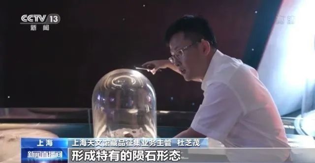 上海天文馆藏品征集业务主管杜芝茂:“这个陨石有一个非常大的特征,上面有非常多的小洞。因为当时里面有硅酸盐,经过多年,硅酸盐脱落,形成特有的陨石形态。比如这个碳质球陨石CV3,上面有很多球类的圆形结构,很完美地保存下来,而且都是正圆的结构。”