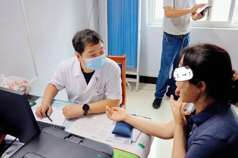 △随州市名中医冷海昌正在为前来敷贴市民作诊疗