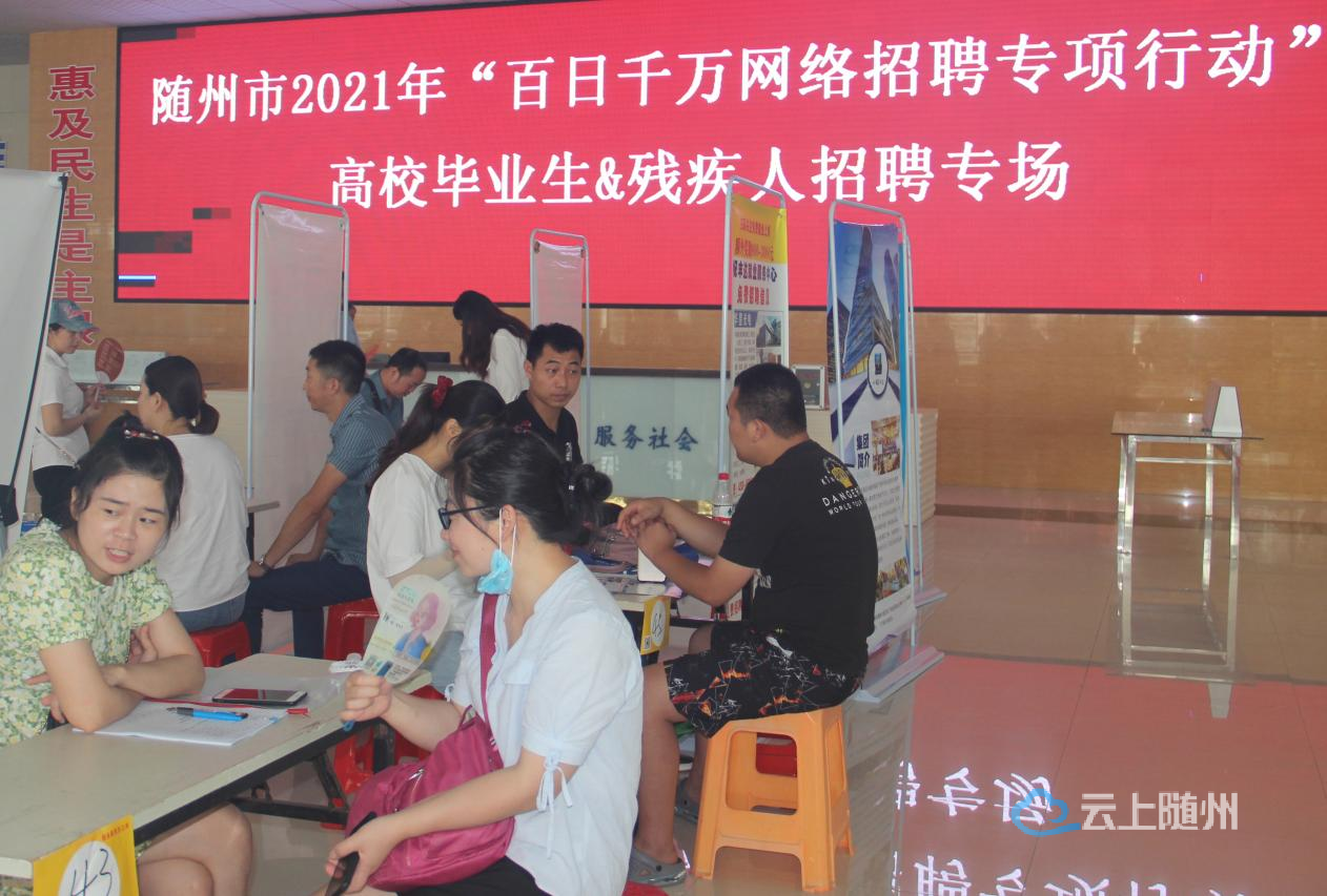 7月17日上午,随州市2021年“百日千万网络招聘专项行动”高校毕业生&残疾人招聘专场在市公共就业服务中心大厅举行,为各类毕业生和就业困难残疾人实现就业搭建求职平台。