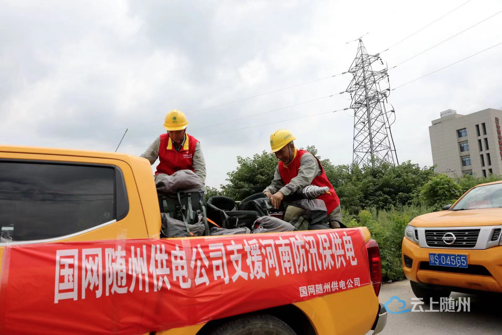 7月23日,国网随州供电公司继派出首支应急救援队伍后,又紧急增派5名抢修人员、1台发电车和6台10千瓦发电机赶赴郑州支援抗洪救灾。