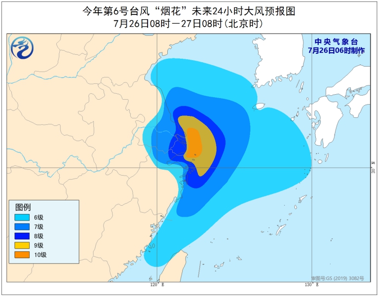 据中央气象台网站消息,今年第6号台风“烟花”将于今天上午在浙江平湖到上海金山一带沿海再次登陆,对此中央气象台7月26日6时继续发布台风橙色预警: