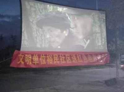为庆祝中国共产党成立100周年,把红色基因一代代传下去,发挥爱国主义精神,丰富社区居民的精神文化生活。7月27日,裕民社区联合淅河文化站开展了“红色电影进小区”活动走进了社区。