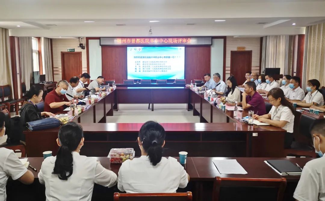 7月28日,湖北省脑卒中防治中心专家评审组一行到随州市曾都医院卒中中心进行现场评审工作。参与本次评审的专家组由湖北省人民医院神经内科主任张兆辉、湖北省中医院神经内科主任丁砚兵、湖北省第三人民医院神经外科主任李俊、荆门市第一人民医院神经内科主任魏郢、湖北省脑防委办公室督察员戚璐5人组成;曾都区卫生健康局党组成员、工会主席、区计生协专职副会长丁继兵、曾都医院党委书记、院长黄湘云、及相关院领导班子成员、卒中中心管理委员会成员参加现场陪检及座谈反馈会议。