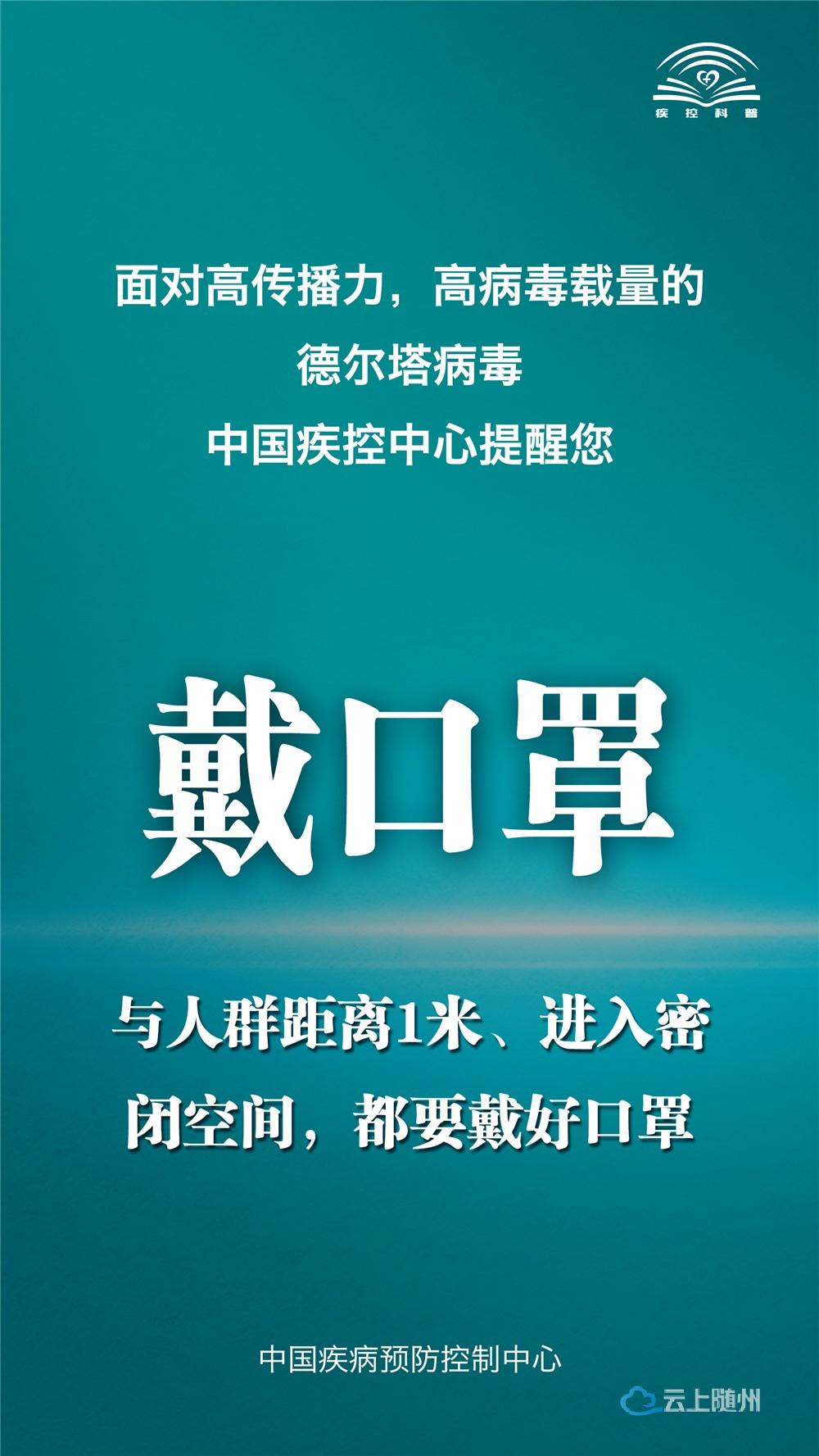 面对高传播力、高病毒载量的德尔塔病毒,中国疾控中心提醒您这9点:莫大意,不隐瞒,戴口罩,手卫生,少聚集,多通风,巧出行,一米线,打疫苗。详见↓