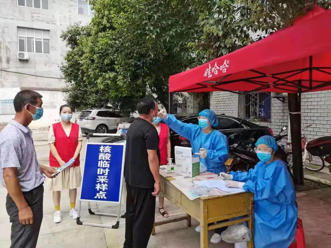 三里岗镇青年志愿者们协助医务人员进行核酸采样工作。