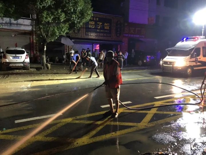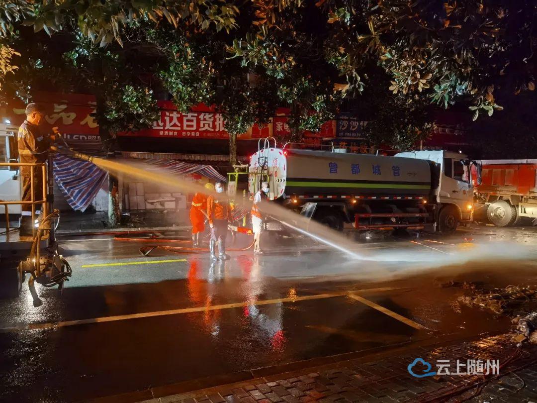 8月12日晚,区城市管理执法局紧急调集40余名环卫工人和10余台大型机械设备,对何店镇镇区道路进行全面冲洗清扫,确保受灾群众尽快恢复生产生活秩序。