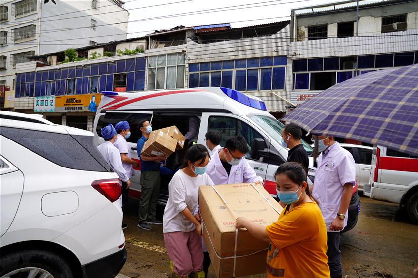 8月11日晚至12日上午,随州部分乡镇遭遇暴雨袭击,柳林、洪山、长岗、何店、洛阳等乡镇受灾严重。面对突发灾情,市中心医院党委积极响应上级号召,派出医疗救援队伍,捐赠医疗救援物资,以实际行动守护灾区人民群众生命安全和身体健康。