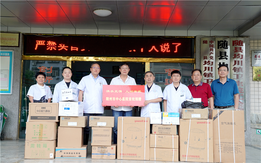 向何店镇卫生院捐赠医用物资灾难无情人有情,灾情就是命令。8月13日上午,随州市中心医院党委书记张振建、院长钱进,党委委员、院办主任胡必富以及医务处、护理部、医学装备处、急诊医学科等科室负责人,奔赴随县柳林镇、三里岗镇、均川镇和曾都区何店镇,向以上四个乡镇卫生院首批捐赠了无创呼吸机、空气消毒机、制氧机等急救医疗设备、药品和消杀用品,总计价值60余万元。同时派出4支医疗小分队,为灾区群众提供医疗保障,协助当地卫生院开展疫情防控,确保大灾之后无大疫。