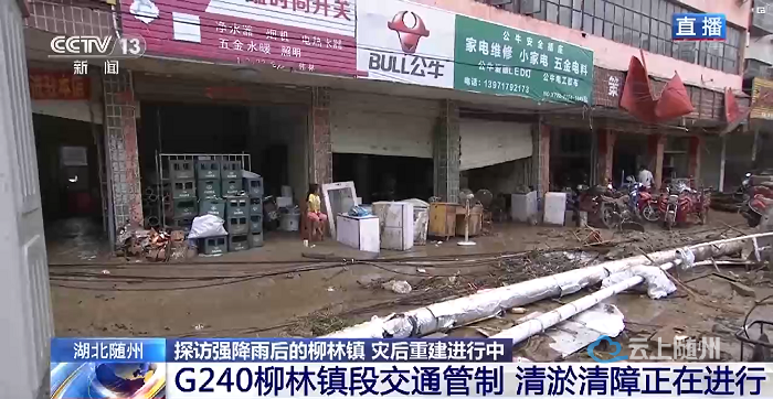 总台记者 倪晶依:国道240的柳林段是进行了一个暂时性的交通管制,只允许与救援有关的相关车辆进入,其他同行的车辆需要绕行。居民们正将家中的电器搬到街边,方便清淤清障工作的进行。