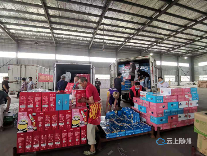 8月14日,上海均瑶集团旗下的均瑶大健康饮品股份有限公司捐赠的价值25万元的4000余箱味动力饮品顺利抵达随县抗洪捐赠物资接收点。