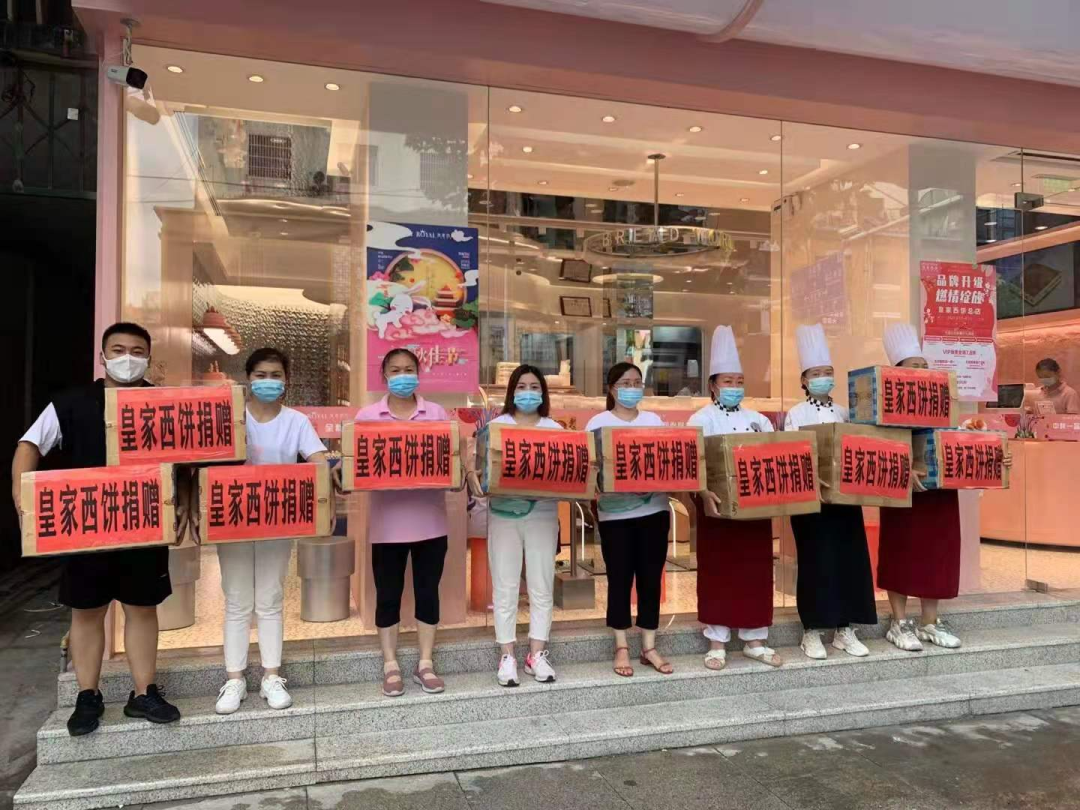 8月12日,响应区商务局和区团委的号召,捐赠60箱面包、蛋糕送到何店镇政府,价值20000元左右。8月13日,捐赠50提面包、蛋糕送到曾都区青年志愿者服务点,价值3500元左右。响应市食品行业协会的号召,捐赠50箱面包、蛋糕送到何店镇王家河村委会,价值20000元左右。8月15日,捐赠50提面包、蛋糕送到曾都区青年志愿者服务点,价值3500元左右。