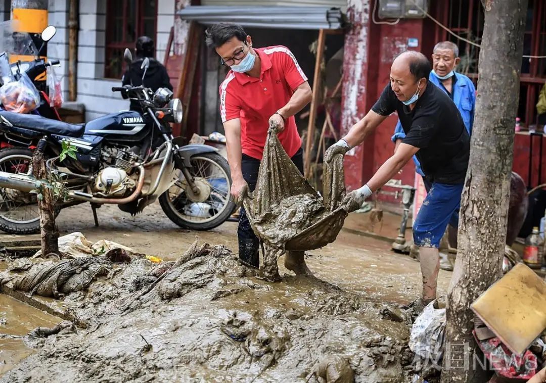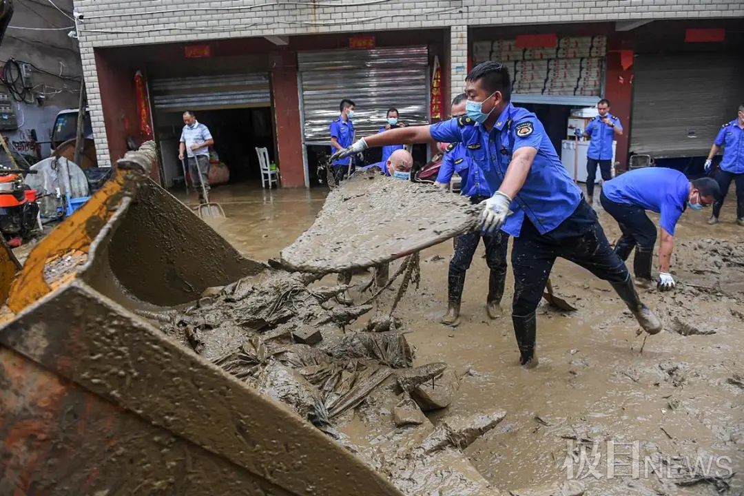 铲车、装载机、渣土车、挖机、清扫车开进街道,环卫工、青年团员、民兵、志愿者,踏着泥泞走进居民家里。