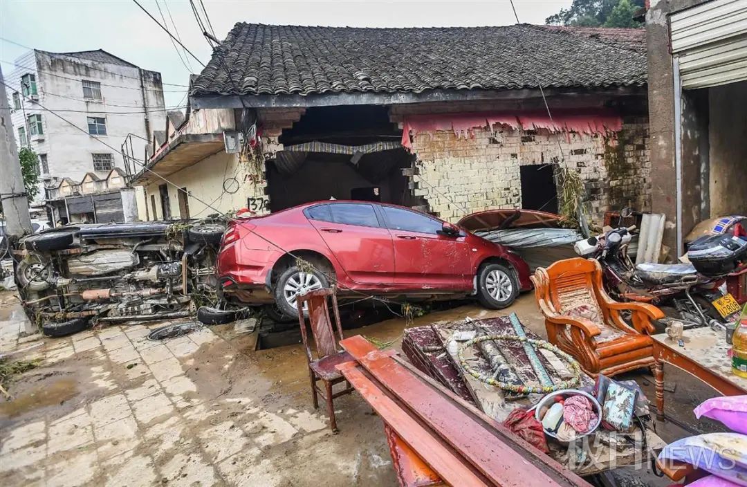 房屋被淹,财产受损,家里的家电和物件,随着周围山上裹挟而至的洪水四处漂零。