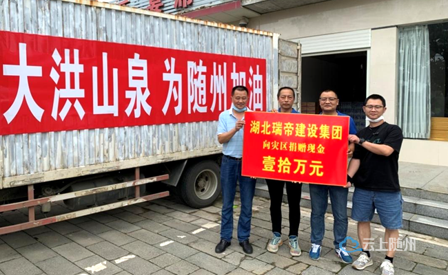 “8.12”随南遭特大暴雨灾害后,湖北瑞帝建设集团组织旗下公司积极慷概解囊、奉献爱心。8月16日上午,该集团旗下公司代表带着资金、物资奔赴大洪山风景名胜区,向该区红十字会捐赠现金10万元,同时捐赠价值近万元大洪山泉饮用水、饮水机等,合计捐赠钱物近11万元。