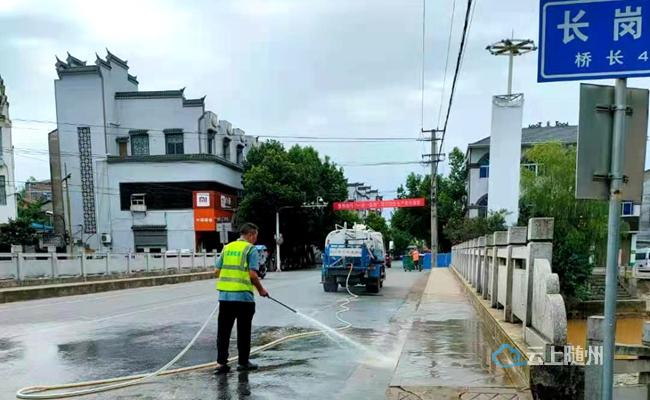 灾后,城镇一片狼藉,到处是垃圾。洪水裹挟而来的大量淤泥和垃圾堆积在道路和居民家中,严重影响当地群众生产生活。大洪山迅速组织开展市政设施排查整治工作。每天出动环卫工人60余人,各种机械化作业车辆30余台,对垃圾进行清理,环境进行消杀。经过几天的奋战,已冲洗街道25000余平米,清理淤泥100余立方,清理灾后垃圾200余吨。镇区街道进水房屋已基本清理完毕,生产便道清理完成100%。卫生部门对已清理出的房屋、水井、公共区域等进行全方位消杀,确保大灾后无大疫。在菜市场,消杀队员身穿防护服,正在紧张地进行喷洒式消毒作业。“我区对一些重点场所,共出动了2台消杀车,一天进行2次消杀作业,确保灾后无疫病的产生,及时还老百姓一个安宁祥和的生活。”景区管理局副局长宫英奥说道。