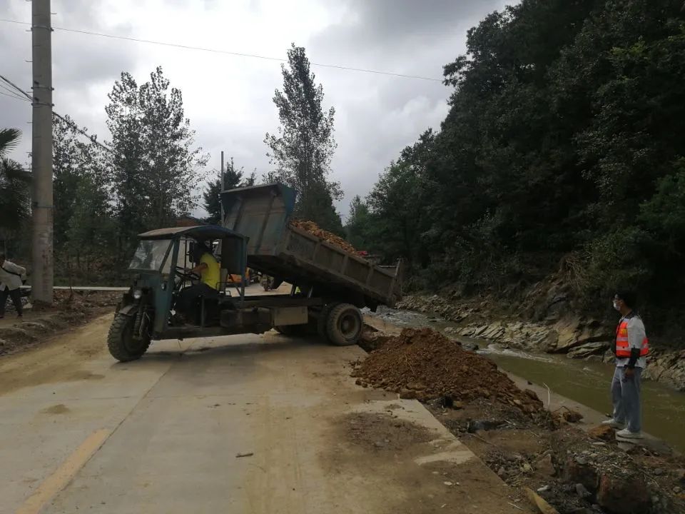 交通、水电等基础设施是村民生产生活的命脉,是灾后重建的基本保障。曾都区农村公路局工作人员王坤指挥着运输石料的车辆有序作业。“县道王谢公路全线8公里,其中水毁6公里。为确保主干道畅通,救灾物资及时送达受灾村民家里,8月13日起,他们就开始清除公路上的障碍物,水毁路段设置路障和指示标志,预计用一周的时间,王谢公路辽原段水毁公路就能完工。”