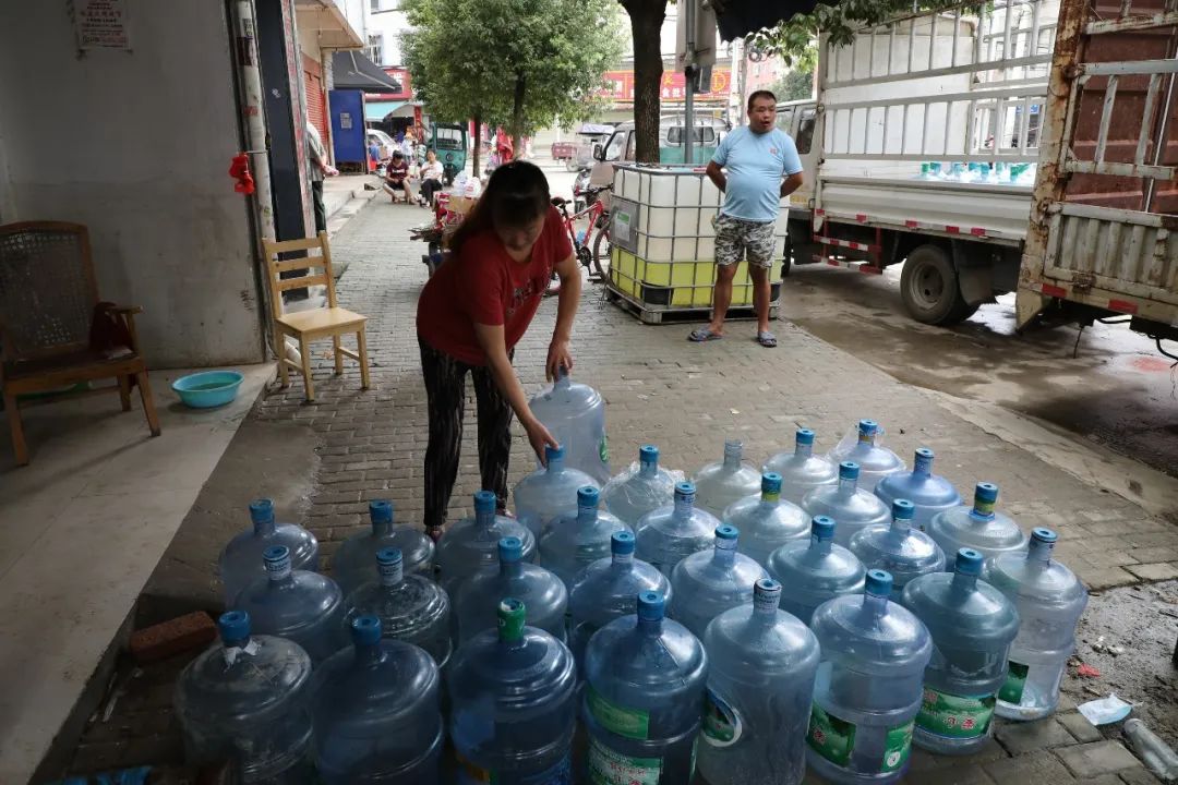 米面油经营门店老板孙诚正在忙着将新进货的桶装水摆整齐。他告诉笔者,和女儿一家在何店镇共同经营米、面、油、糠、饲料、化肥以及电动车等居民生产生活的常用品,这次门店和仓库的货物全被冲走或者泡坏,损失大约30万。