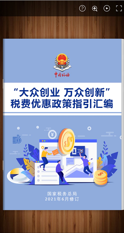 为了方便纳税人缴费人查阅相关税费优惠政策,我们将《“大众创业 万众创新”税费优惠政策指引汇编》制作成电子书,快收藏起来吧!