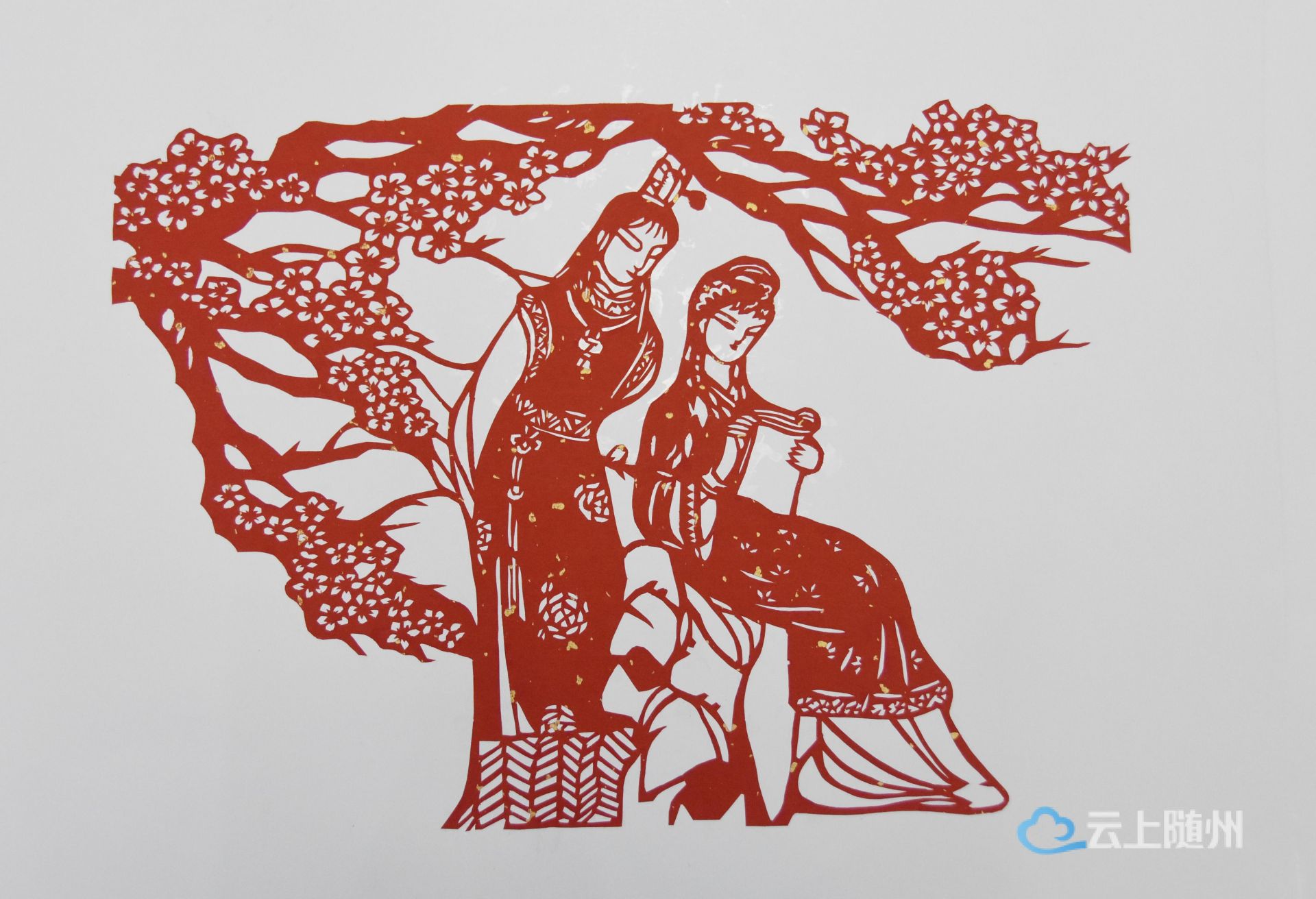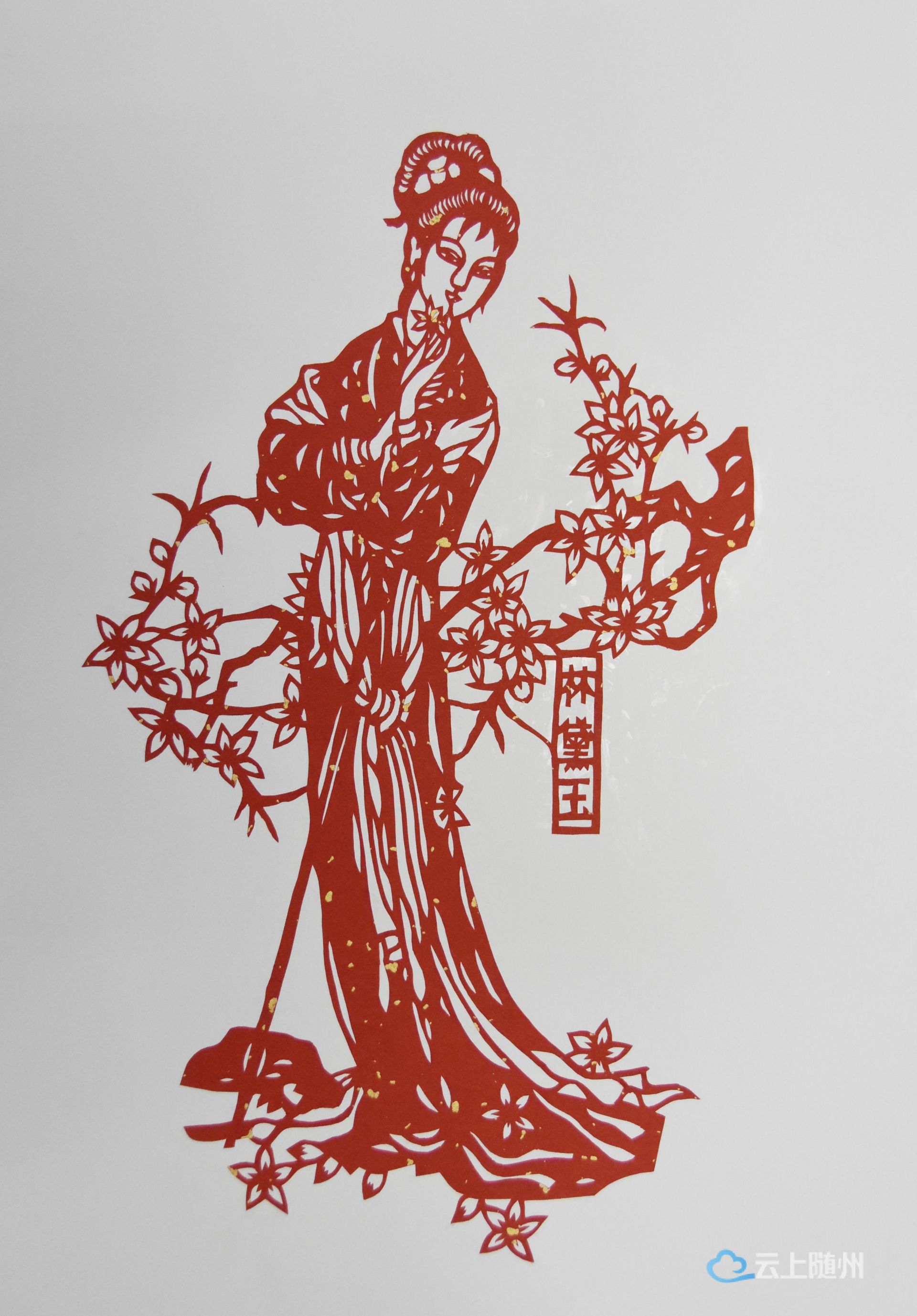 张祖英自幼受奶奶、父亲的影响,对古典文化尤为偏好,以致她剪纸的古典人物最为繁多,比如她最拿手的《红楼梦》中的“十二金钗”,众多的人物形象,个个别具一格,神态彰显性格,惟妙惟肖,令人称绝。她见什么剪什么,随州的编钟、武汉的黄鹤楼、北京的天安门、见过一面的生活中的人物......她有很多代表作,其中《反弹琵琶》是一幅以敦煌壁画《无量寿经变》的局部为原题材的再创作作品,她虽没有去敦煌莫高窟,但朋友拍摄几张莫高窟内的照片引起她极大的兴趣。“这个作品我反复剪了20次,一次从画到剪大概一个多月的时间,反反复复一直剪,直到成功。剪的时候连吃饭都忘了,也不许任何人来打扰我,有一次竟然一天都忘了吃饭。尤其是画人物肖像的时候,有的地方要镂空、要有神采,不然剪出来效果不好。”经过她废寝忘食地反反复复修改琢磨,才最终定稿,而这幅作品成为她用时最长的作品。