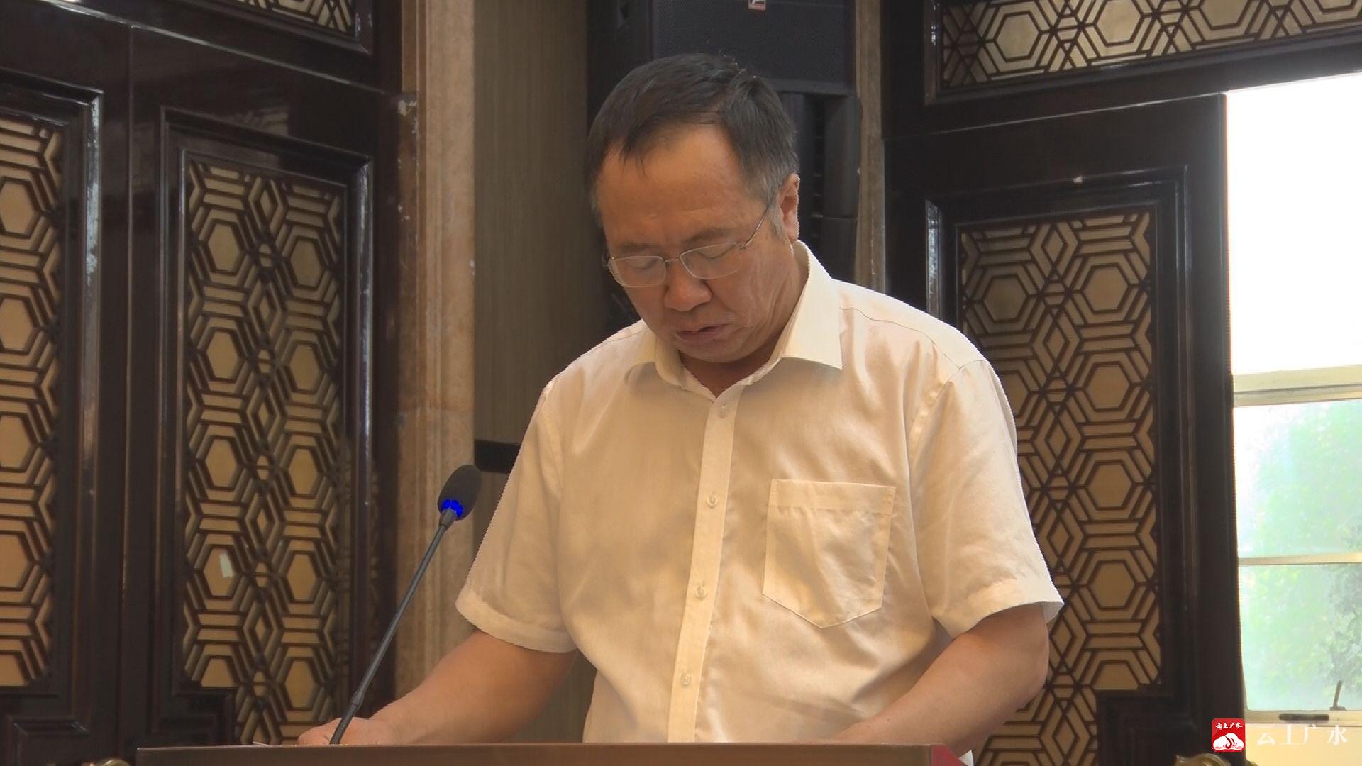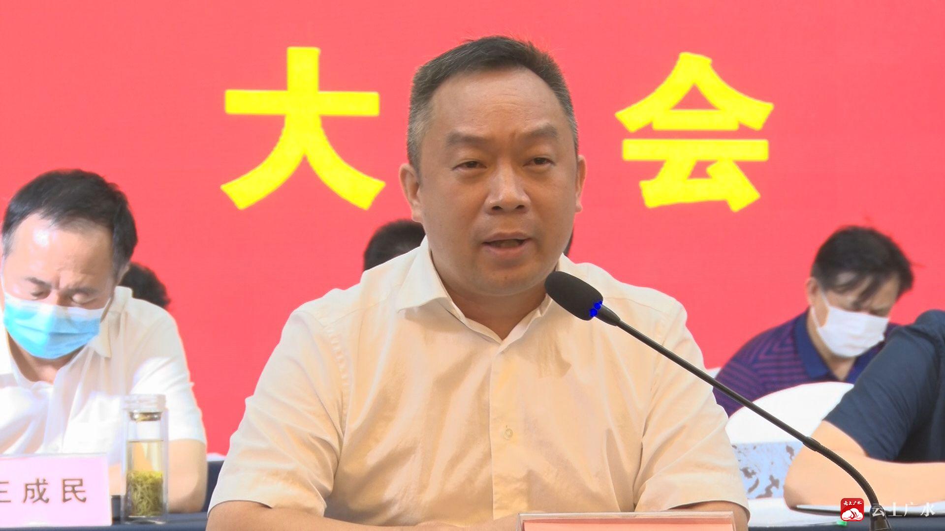 广水市委书记杨光胜主持会议并讲话。广水市委副书记、代市长崔传金,广水市政协主席陈延涛,广水市人大常委会主任石守超,广水市委副书记刘秀玲等“四大家”领导,法检“两长”出席会议。