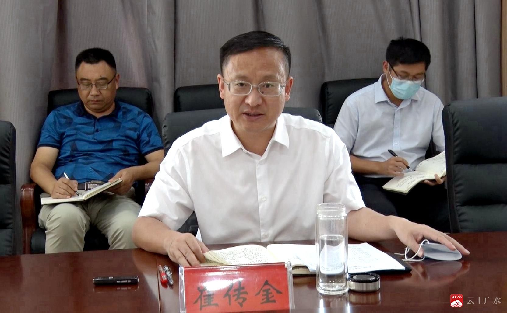 崔传金传达了随州市防汛视频调度会议精神,崔传金指出,根据气象预报,近期广水市将出现新一轮强降雨。各地各部门要认真学习领会随州市防汛视频调度会议精神。务必强化预测预警,密切监视雨情、水情、险情,精准研判、及时响应。务必加强隐患排查,紧盯危房、水毁路桥等重点领域,开展全方位、多层次、拉网式隐患排查,该除险的除险、该加固的加固。务必盯紧重点部位,确保水库、堤坝、堰塘等水利设施安全。务必果断避险转移,要严格落实“八个应转尽转”要求,不能有任何侥幸心理。务必做好应急准备,落实应急响应机制,构建上下贯通、横向衔接、运转畅通的应急救援指挥体系,确保一旦发生汛情,能果断处置,高效应对。务必压实各方责任,各地各部门要坚持靠前指挥,冲锋在一线、督导在一线。
