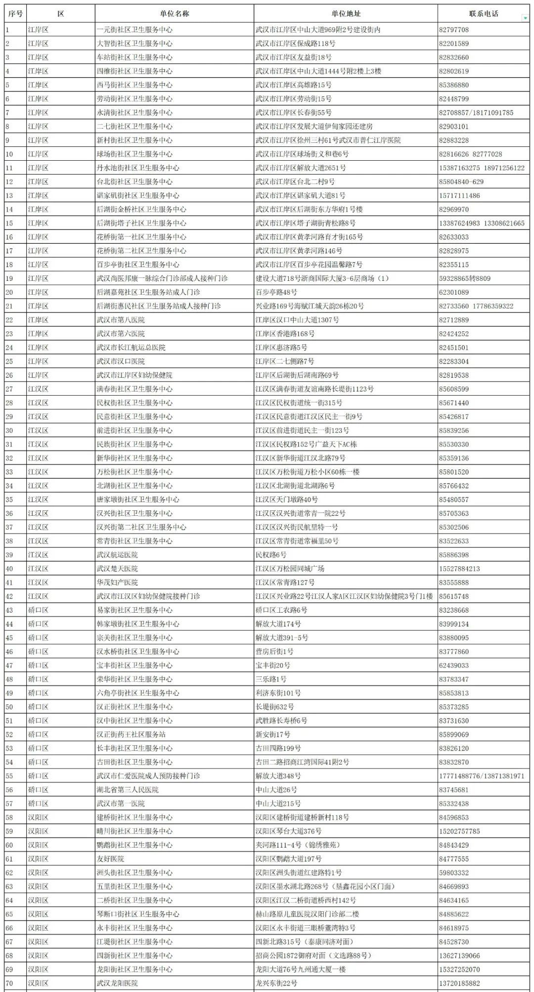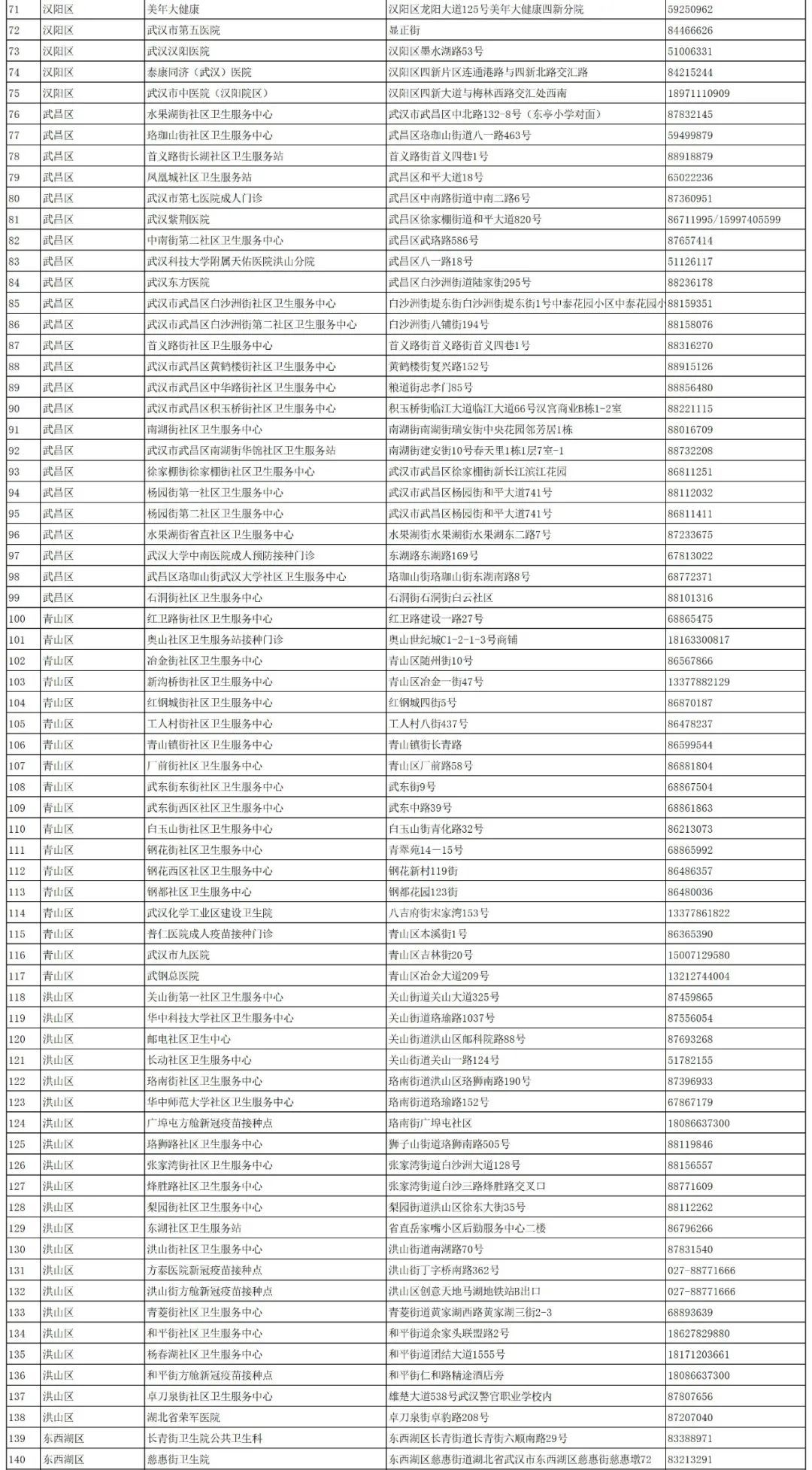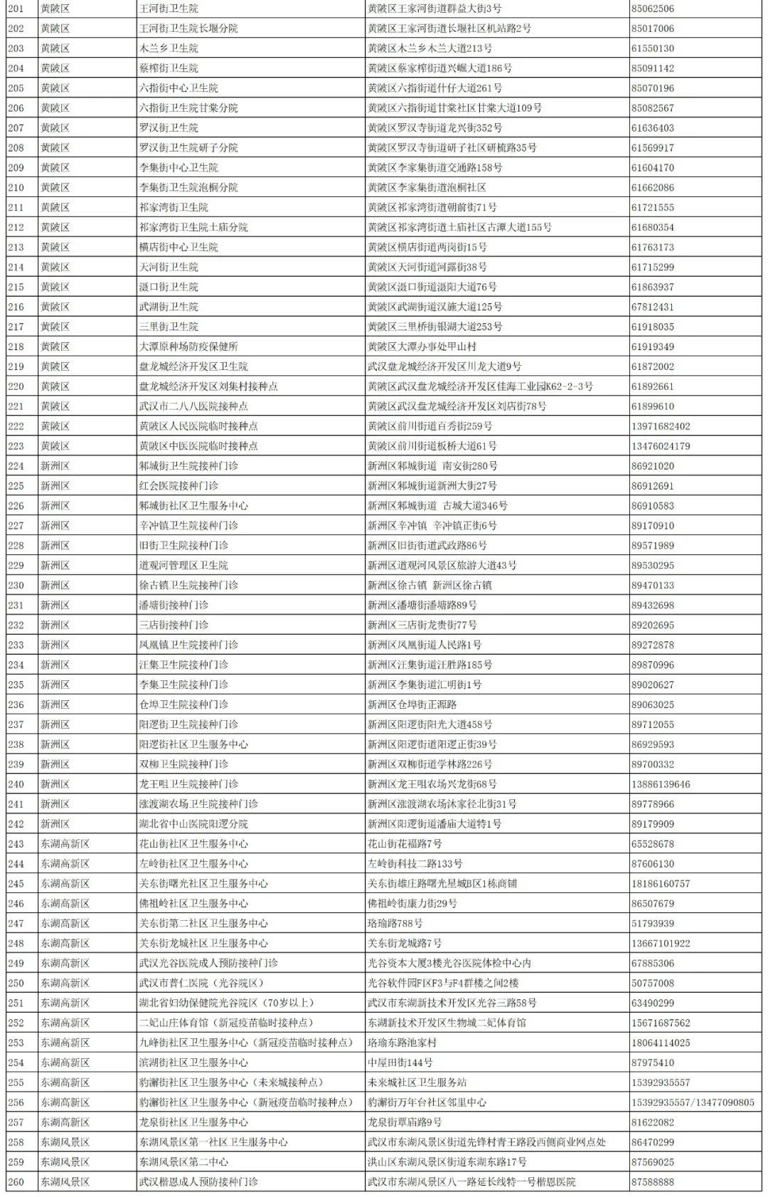 湖北省新冠疫苗接种门诊(点)一览表