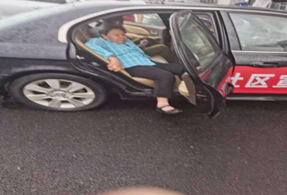 场外,尽管下着密密细雨,但各小组组长及社区工作人员正在用私家车或宣传车将行动不便居民从家里接过来做疫苗接种禁忌症评估。