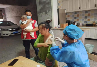 临近中午,仍有极少数居民未能前往社区服务中心做禁忌症评估及接种,高新区医护人员及寨塆社区工作人员当即决定上门评估、接种。