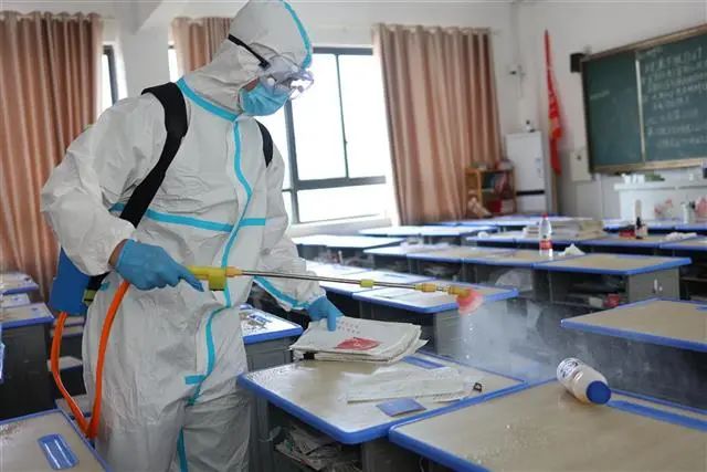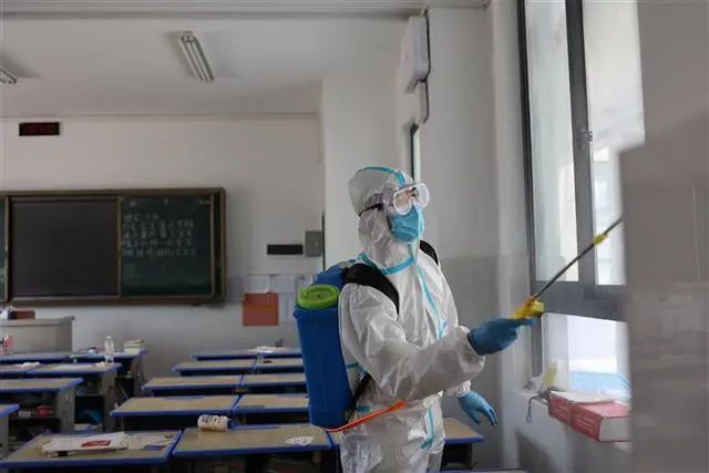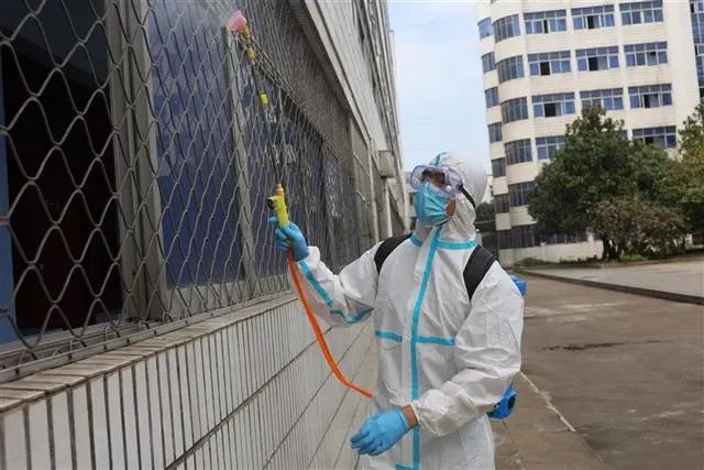 当天上午,消防人员到达学校后与校园相关负责人对接,严格按照卫生消杀管理标准规范操作,身着防护服,背负50余斤重的消毒设备,重点对办公楼、教学楼、宿舍楼、公共卫生间等重点区域,以及楼梯扶手、门把手、开关按钮等需要频繁接触的公共部位进行全方位消毒作业,此次消杀历时2个小时,消杀面积约10000平方米,做到不留死角、不留盲区,从源头上预防病毒传播和扩散。