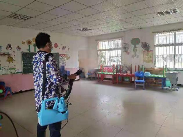 “为切实做好疫情防控工作,开学前,幼儿园全体教职工从心开始,从细着手,按照卫生消毒管理的标准,对幼儿园室内、走廊、活动区、户外、厨房等各个角落进行全面而细致地清扫消毒。”幼儿园园长万小丽边走边介绍道,“守好大门也是我们防疫工作的重要环节,对于入校人员,我们严格落实好体温检测、扫健康码、登记等。”