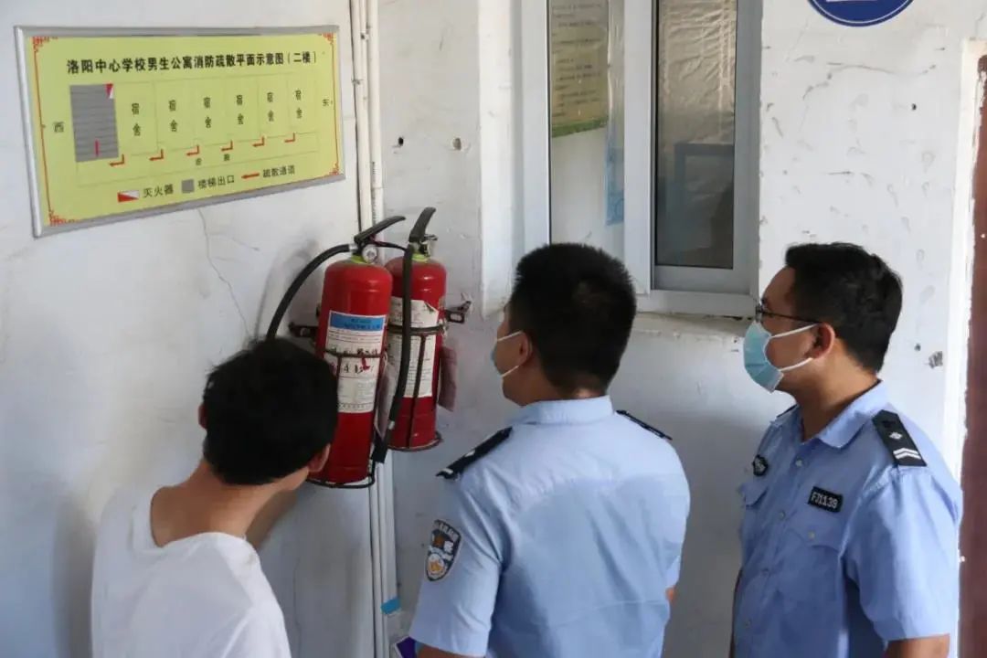 在洛阳镇中心学校,镇派出所正在开展全面安全检查,对校园安全工作开展、疫情防控措施落实、保安配备情况、门卫安保器材、各类消防设施配备是否齐全等进行全面检查。