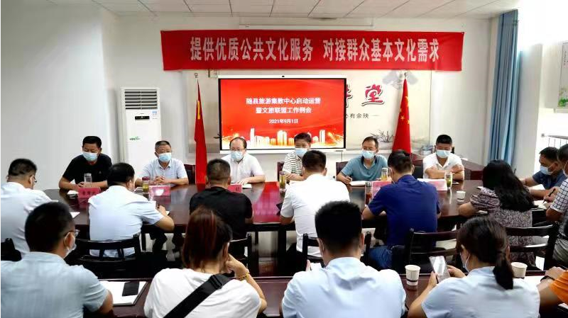 在揭牌仪式前,随县旅游集散中心启动运营暨文旅联盟工作例会在县文旅局会议室召开。会议明确了旅游中心的定位和功能,其是社会化、市场化、规范化、公益性的服务机构,是集旅游咨询、旅游接待、旅游预订、交通集散、旅游商品销售、景区运行动态监测、游客休憩、便民服务等功能于一体的综合性旅游服务平台。