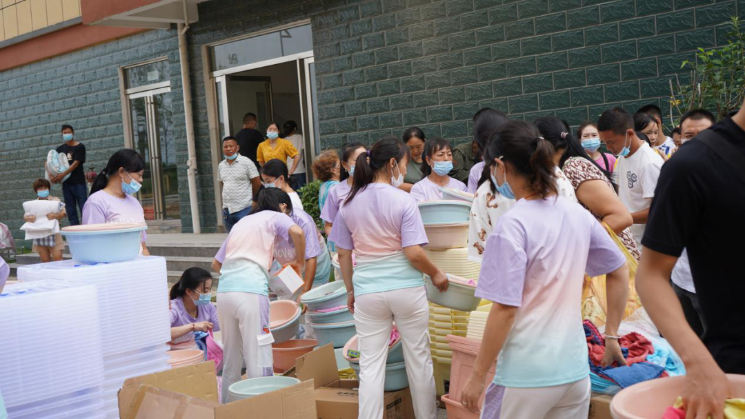老师们正在为学生分发学校为他们准备的生活用品