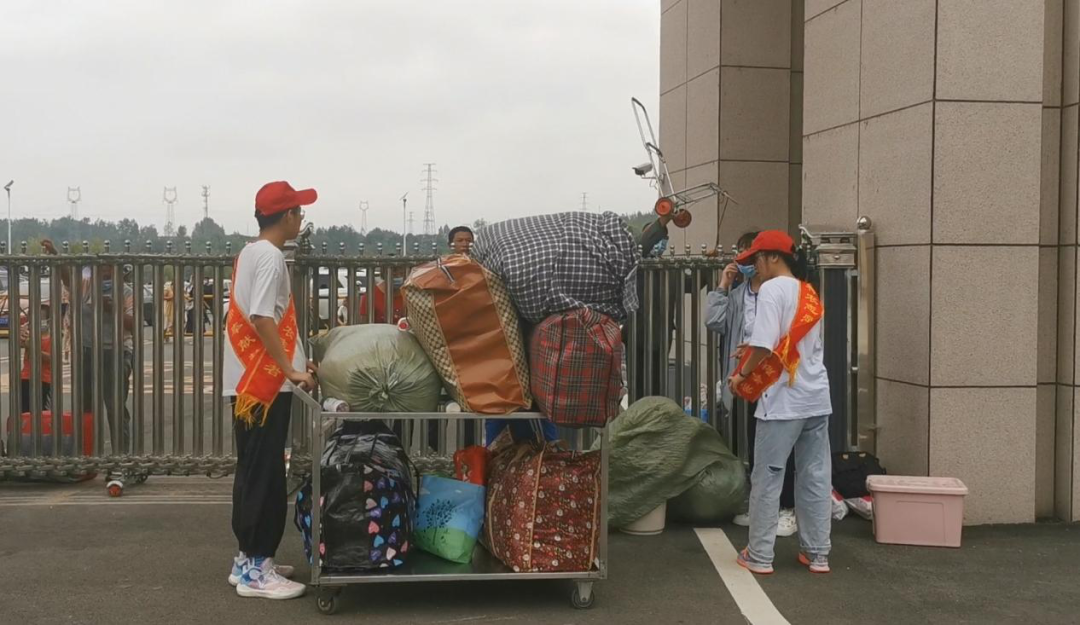学生志愿者正在帮助新生搬运行李