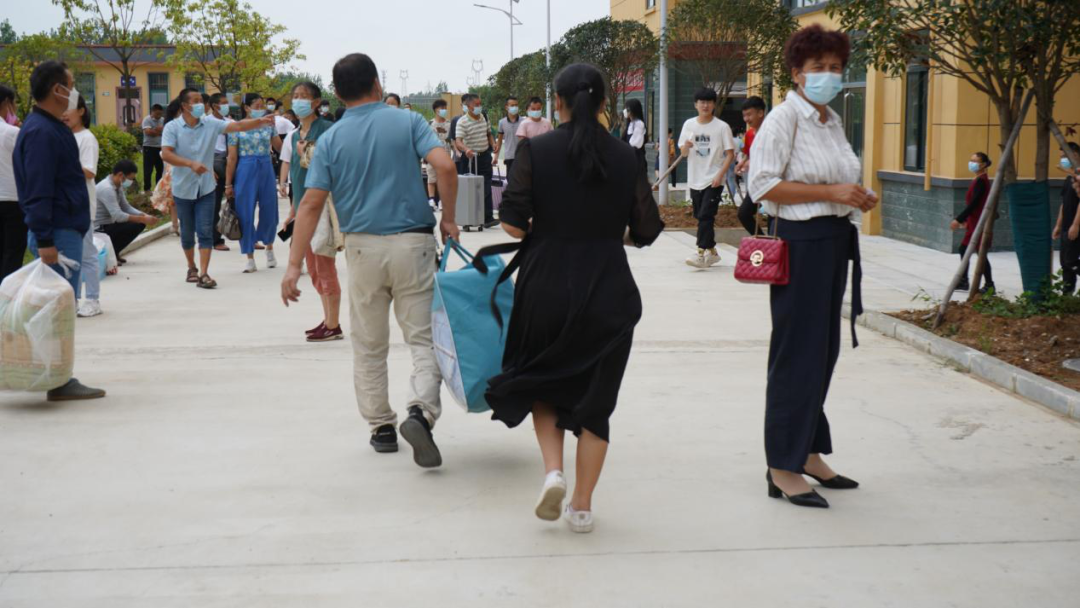 正在搬运行李的学生、家长