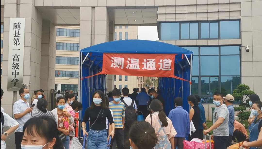 学生们排队有序通过测温通道