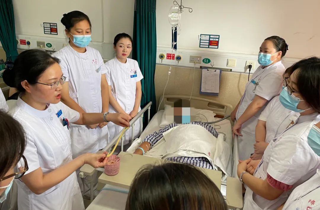 本次教学由管路护理专项组长李敏主持,授课通过“讲-听-演-练”的模式展开教学。工作坊分别从胸腔闭式引流管、胃管、导尿管、T型管等各种管路不同的护理要点进行详细讲解,并围绕“高举平台”、“胶带塑型”、引流袋(瓶)更换等相关知识及管路护理、固定技巧进行演示。