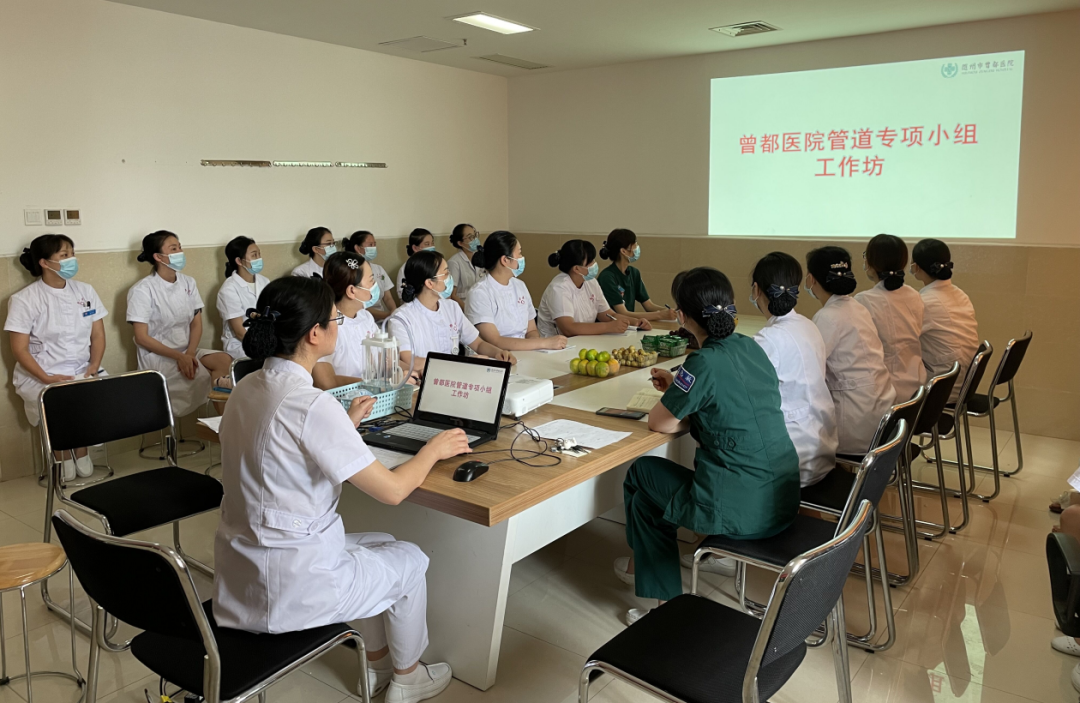 为规范临床常用管路的护理,降低非计划性拔管,提高护理服务能力,提升患者满意度,8月31日,曾都医院护理部开展“管路护理”工作坊式教学。由管路护理专项小组组织全院临床科室护士长及护理骨干成员共同交流学习。